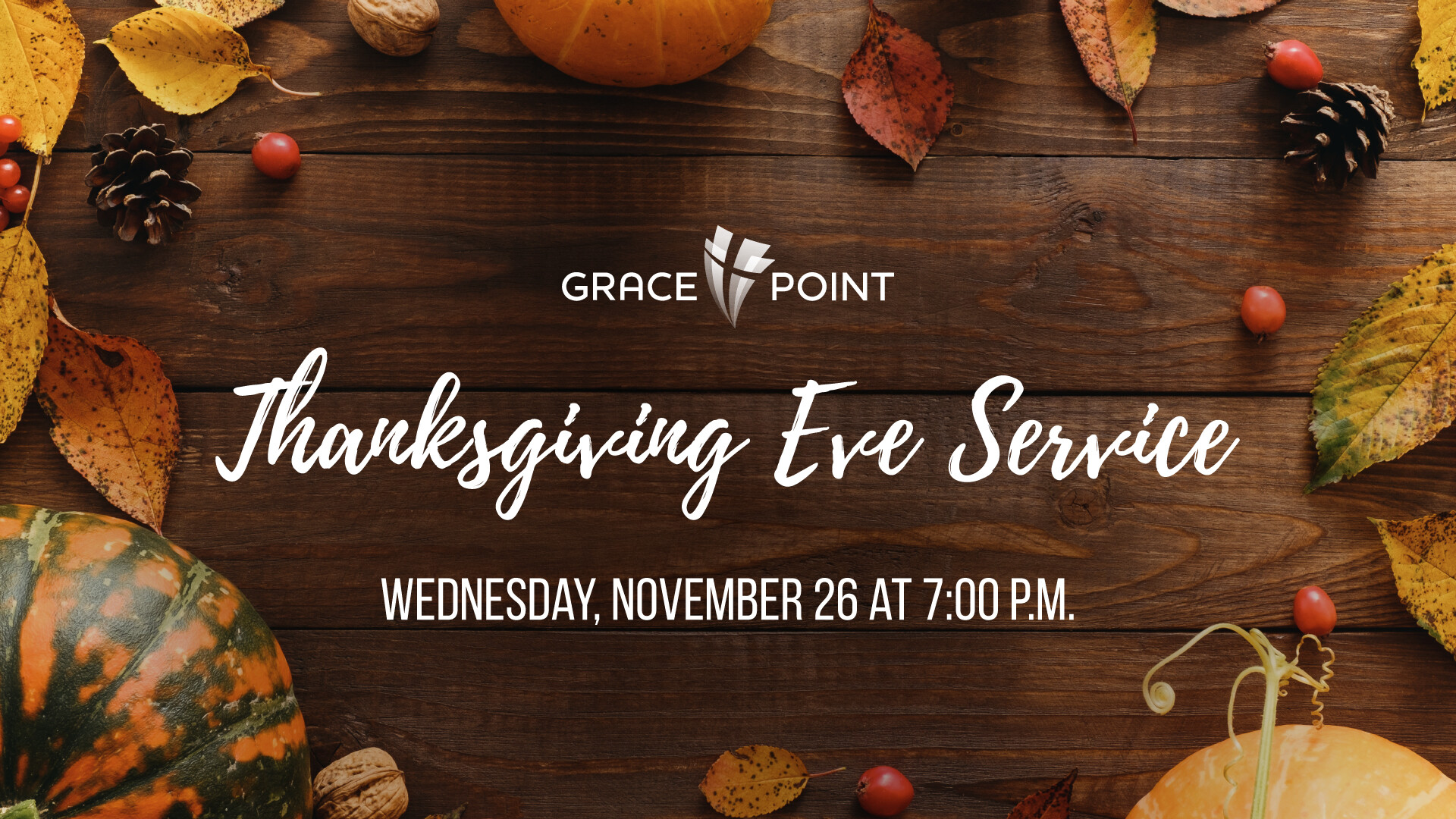 Join us on Wednesday, November 26, at 7:00 p.m. for our Thanksgiving Eve Service, including worship and testimonies. The service will also be available via livestream. We hope to see you!